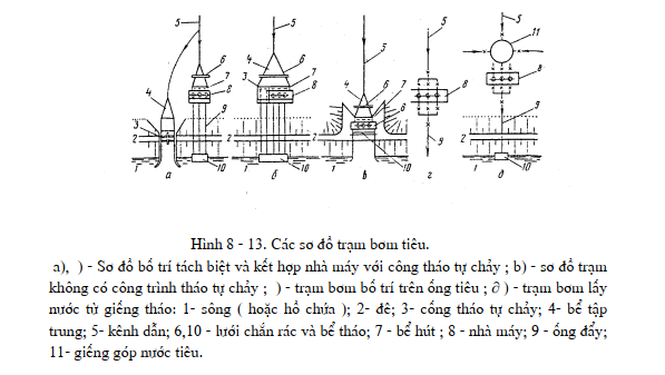 - 3.1. Trạm Bơm Bố Trí Trên Ống Tiêu (Hình 8-13, $\text{d}$):