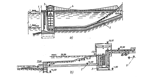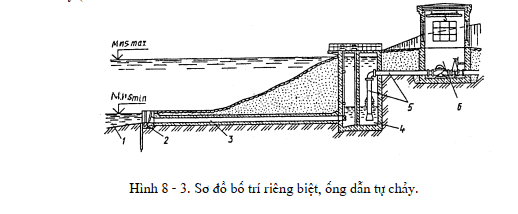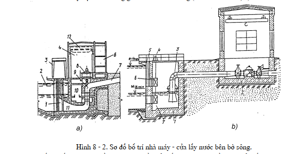 • 2.2. Sơ Đồ Bố Trí Riêng Biệt (Cửa Lấy Nước Lòng Sông, Nhà Máy Bờ – Hình 8-4,b):