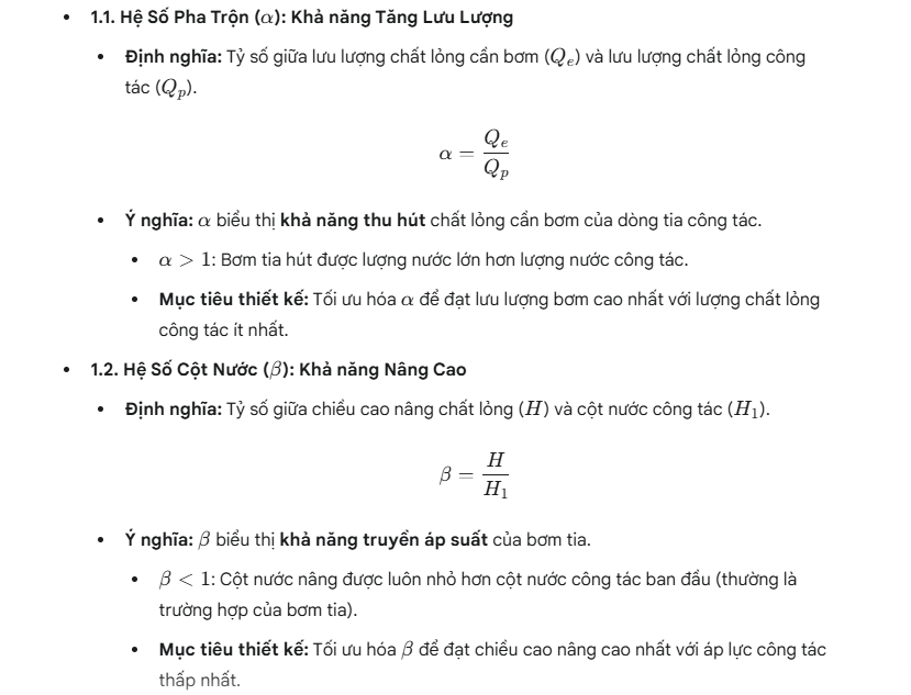- Ý nghĩa: Hiệu suất của bơm tia là tích của khả năng hút ($\alpha$) và khả năng nâng ($\beta$).